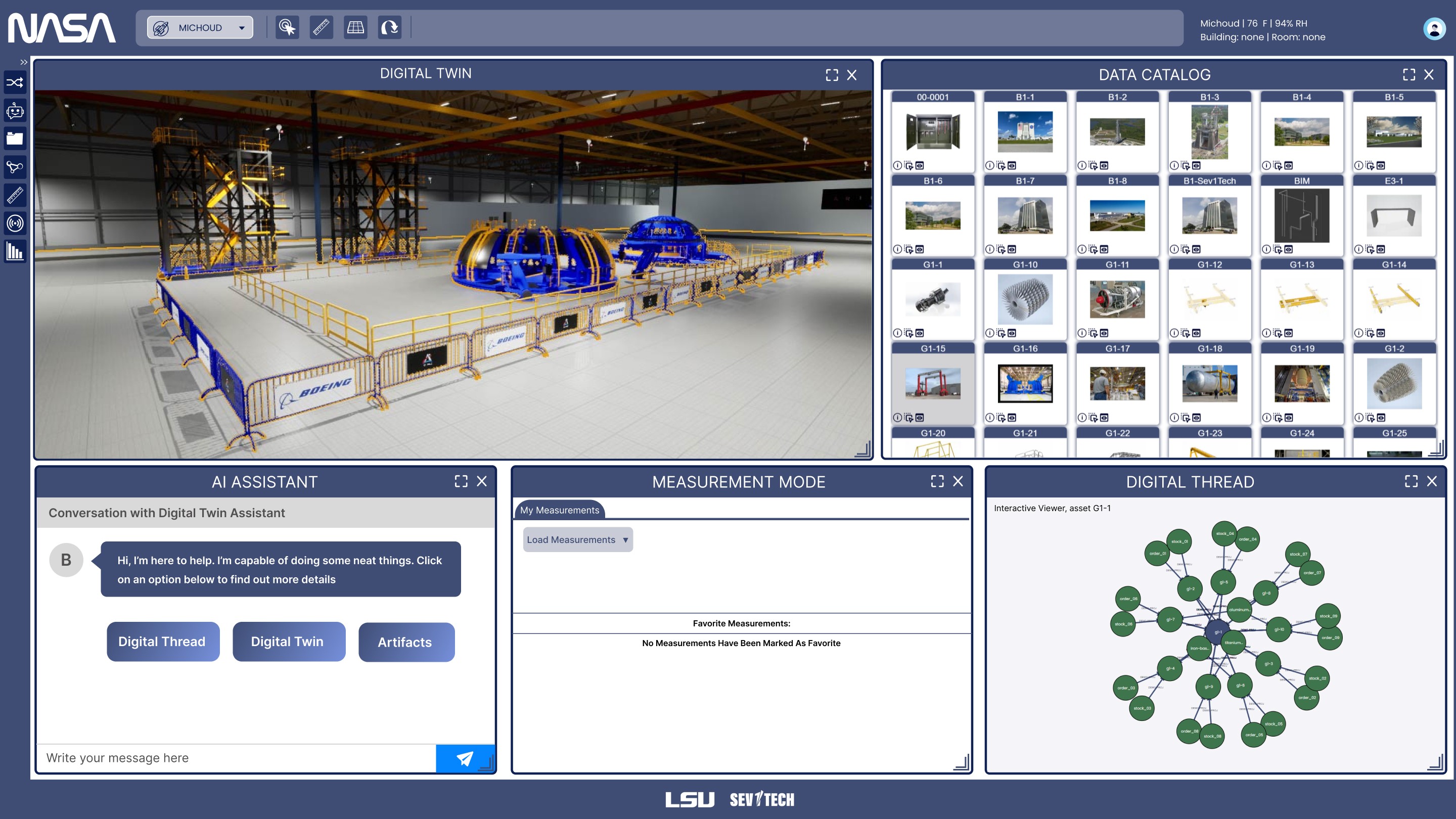 Designing an interactive digital twin platform for NASA Michoud Assembly Facility, enabling real-time collaboration and innovation in space engineering.